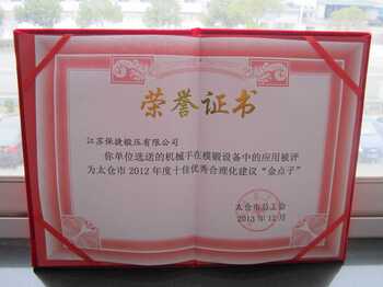 江蘇保捷鍛壓有限公司的表面精軋強化齒坯項目,由國家科學技術部批準,喜獲由科學技術部火炬高技術產(chǎn)業(yè)開發(fā)中心頒發(fā)的國家火炬計劃產(chǎn)業(yè)化示范項目證書。